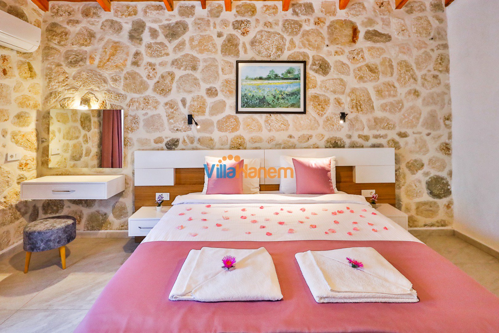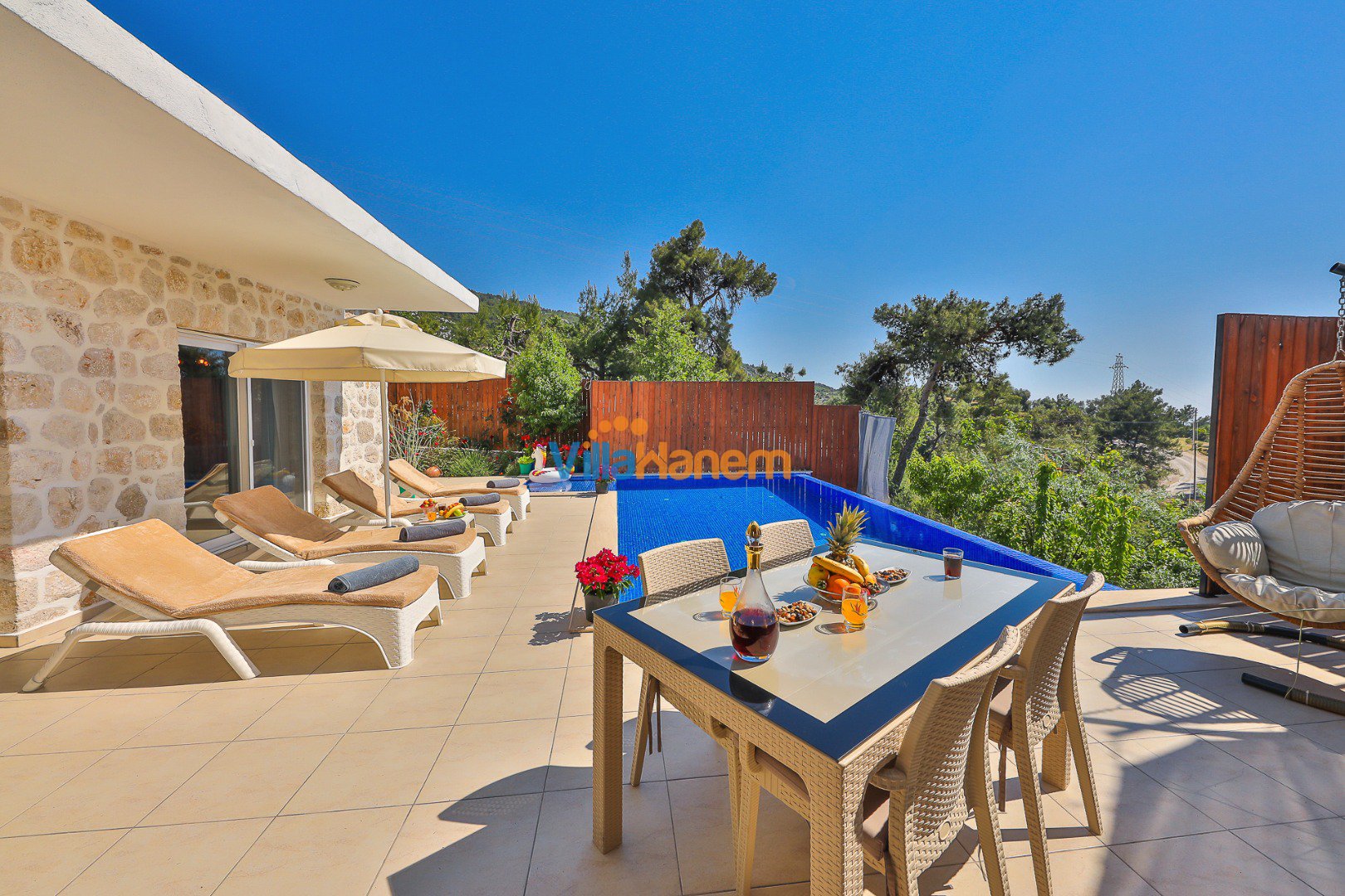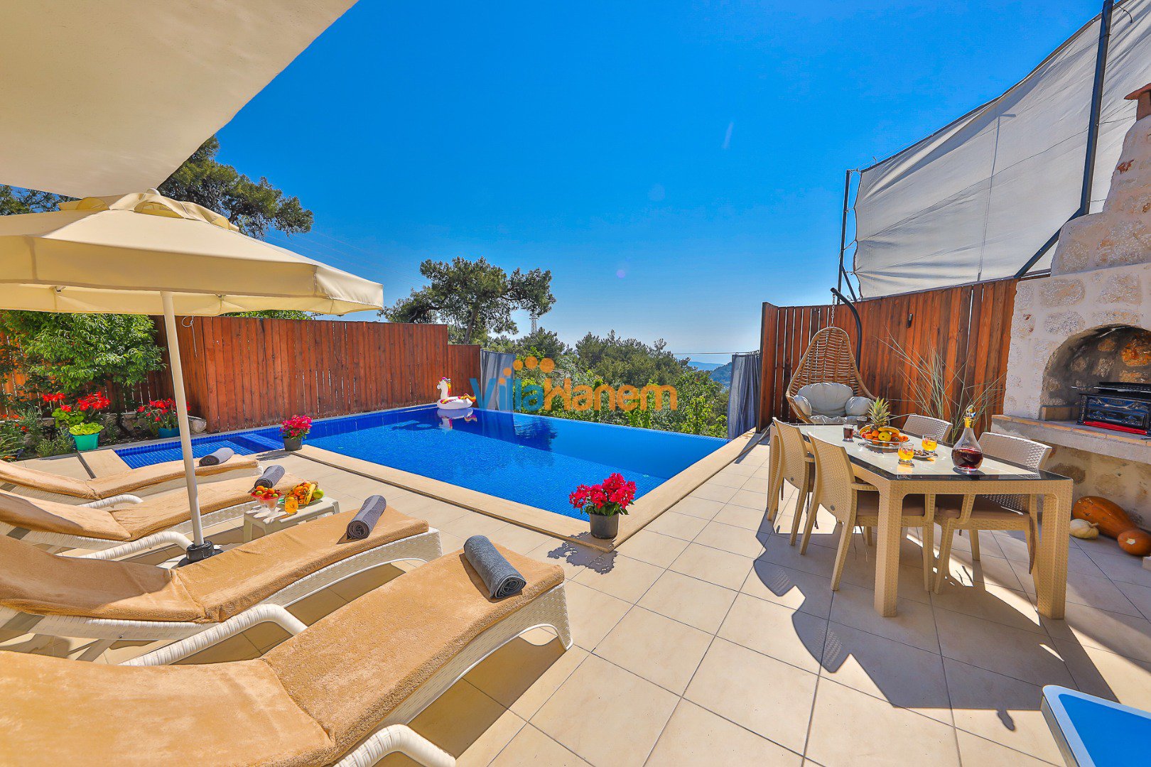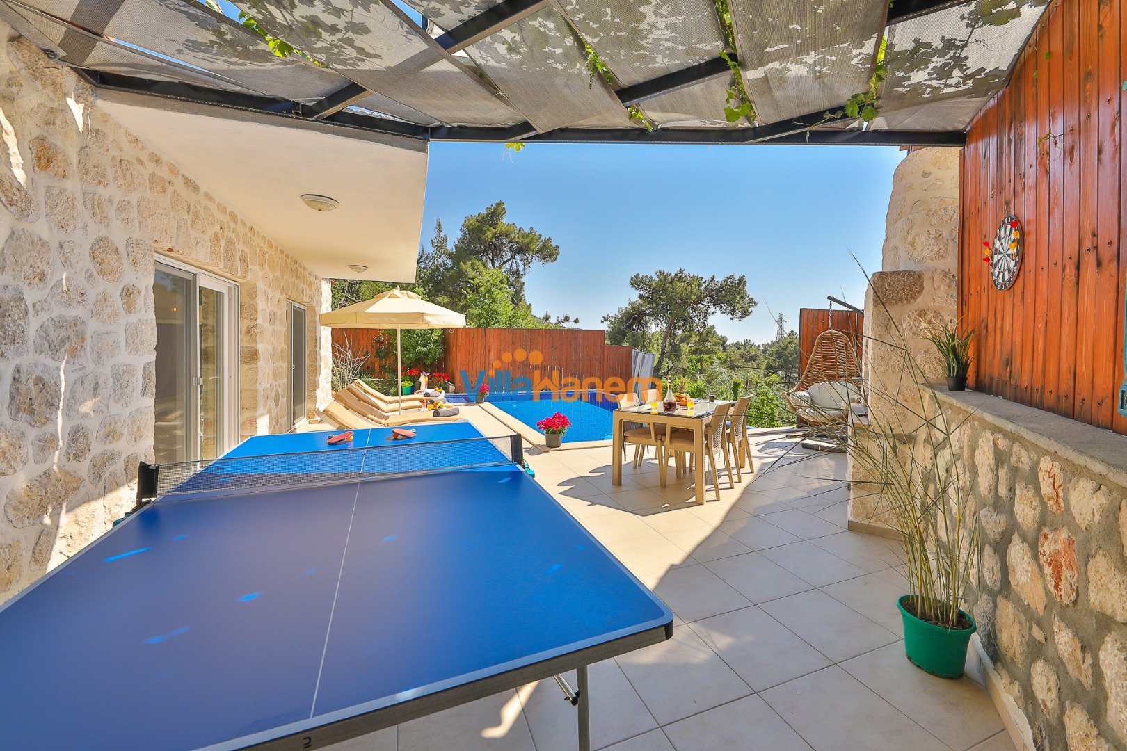 Kalkan İslamlar mevkiinde konumlanmış kiralık balayı villası, muhteşem doğa manzarası ve taş konsepti ile huzurlu ve konforlu bir tatil isteyen konuklarımız için en ideal seçeneklerden bir tanesidir. Villamız muhafazakar villalar ve balayı villaları kategorisinde yer almaktatıdir. 2 yatak odası ile 4 kişiye kadar konaklama imkanını sizlere sunmaktadır. Villamızda bulunan masa tenisi, çocuk havuzu dikkat çekmekte. Ebeveyn odasında bulunan çift kişilik jakuzisi de extra rahatlama imkanı sunmaktadır. Havuzu korunaklı (Havuzun dışarıdan gözükmediği anlamına gelir) özelliği ile mahremiyete önem veren misafirlerimiz için önü kapanmayan manzarada tatil imkanı sunmaktadır.