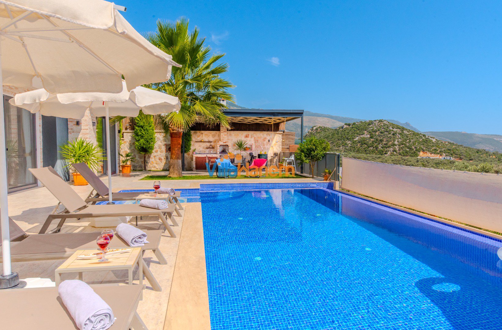Kalkan Çavdır mevkiinde konumlanmış kiralık villamız, tasarımı dizaynı ve mimarisi ile dilere destan huzurlu ve konforlu bir tatil isteyen konuklarımız için en ideal seçeneklerden bir tanesidir. Çift kişilik jakuzisi, geniş bahçesi, Masa tenisı, langırt, çocuk havuzu , saunası ile sizlere unutulmaz bir tatilin kapılarını aralamktadır. Villamız muhafazakar villalar, Lüks Villalar ve Bahçeli Villalar kategorisinde yer almaktatıdir. Villamız doğa ile iç içe olup 2 yatak odası ile 5 kişiye kadar konaklama imkanını sizlere sunmaktadır. Ebeveyn odasındaki jakuzisi ve misafirlerimize ekstra rahatlama imkanı sunuyor.