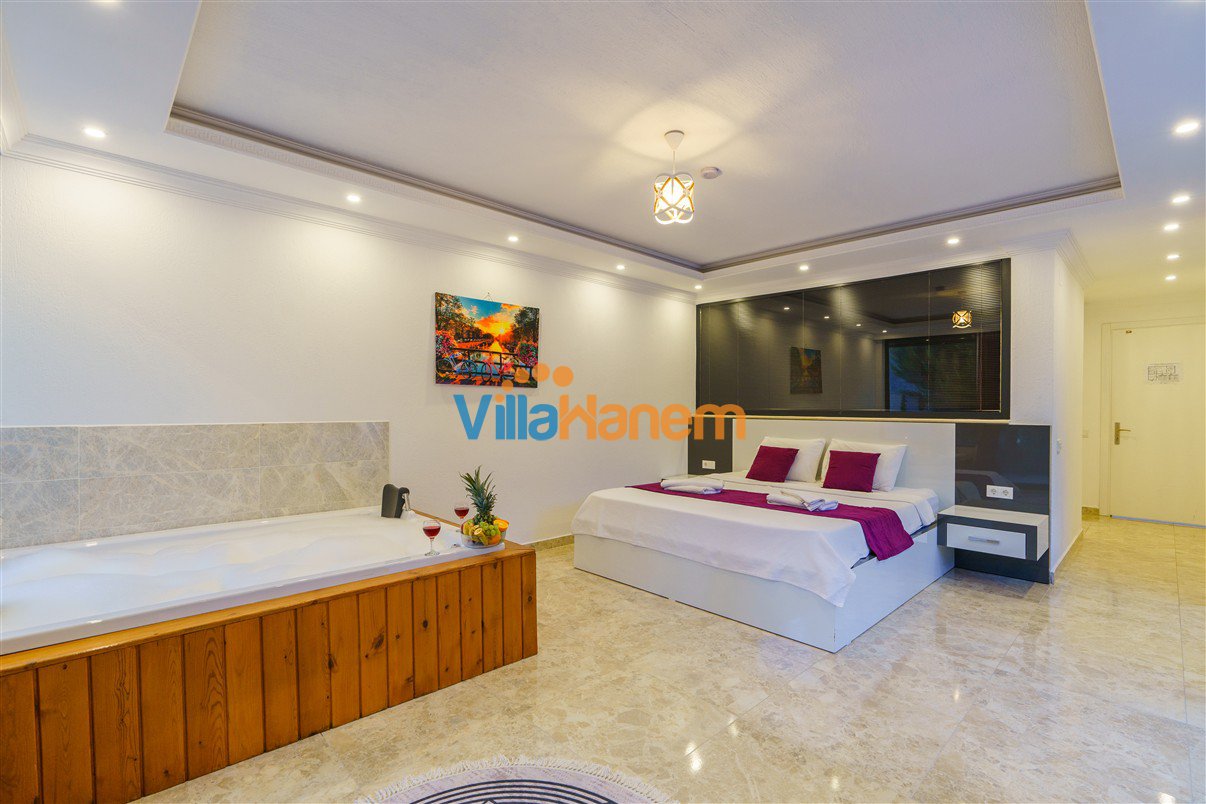 Kalkan Sarıbelen mevkiisinde konumlanmış, 2 yatak odalı, 4 kişilik konaklama kapasitesine sahip özel havuzlu Villa Saha, doğa manzarası ve çift kişilik jakuzisi ile misafirlerimize ekstra rahatlama imkanı sunuyor. Siz değerli ziyaretçilerine benzersiz bir tatil deneyime yaşatmaya hazır olan villamız, Villa Saha kiralık balayı villası, huzurlu ve konforlu bir tatil isteyen konuklarımız için en ideal seçeneklerden bir tanesidir. Villamız muhafazakar villalar ve balayı villası kategorisinde yer almaktadır.