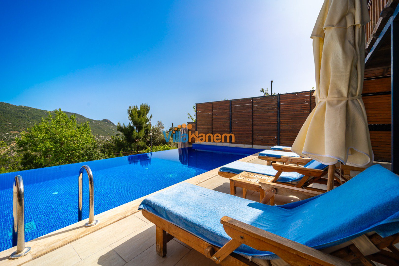 Kalkan İslamlar mevkiinde konumlanmış kiralık balayı villası, huzurlu ve konforlu bir tatil isteyen konuklarımız için en ideal seçeneklerden bir tanesidir. Villamız muhafazakar villalar ve balayı villaları kategorisinde yer almaktatıdir. 2 yatak odası ile 4 kişiye kadar konaklama imkanını sizlere sunmaktadır. Muhafazakar konsepti ve doğa ile iç içe olan konumu sizlere şehirden uzak sessiz sakin ve tüm yılın yorgunluğunu atabileceğiniz izole bir tatil imkanı sunuyor. Modern dizaynı ve ebeveyn odasında bulunan çift kişilik jakuzisi ile sizlere extra rahatlama imkanı sunuyor. Havuzu korunaklı (Havuzun dışarıdan gözükmediği anlamına gelir) özelliği ile mahremiyete önem veren misafirlerimiz için tatil imkanı sunmaktadır.