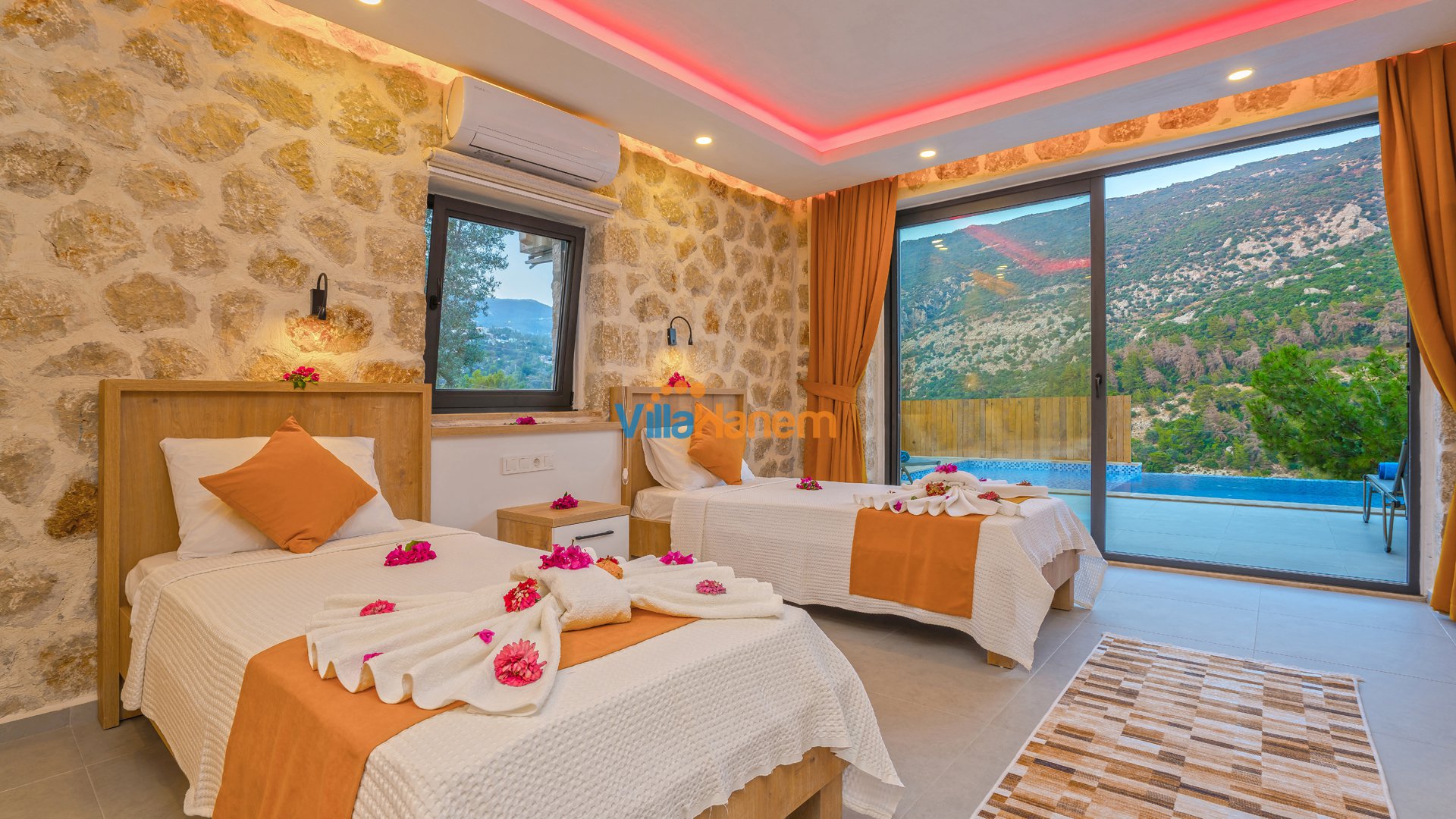 Kalkan İslamlar mevkiisinde konumlanmış kiralık balayı villası, huzurlu ve konforlu bir tatil isteyen konuklarımız için en ideal seçeneklerden bir tanesidir. Villamız muhafazakar villalar ve balayı villaları kategorisinde yer almaktatıdir. 2 yatak odası ile 4 kişiye kadar konaklama imkanını sizlere sunmaktadır. Havuzu korunaklı (Havuzun dışarıdan gözükmediği anlamına gelir) özelliği ile mahremiyete önem veren misafirlerimiz için tatil imkanı sunmaktadır.